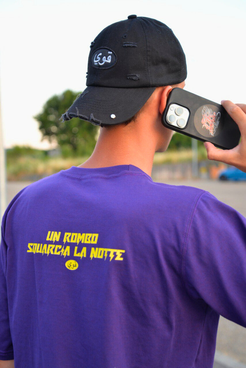 Davanti, una patch ricamata con la scritta “قوي” ("Forte", in arabo) racconta di forza interiore e visione globale.