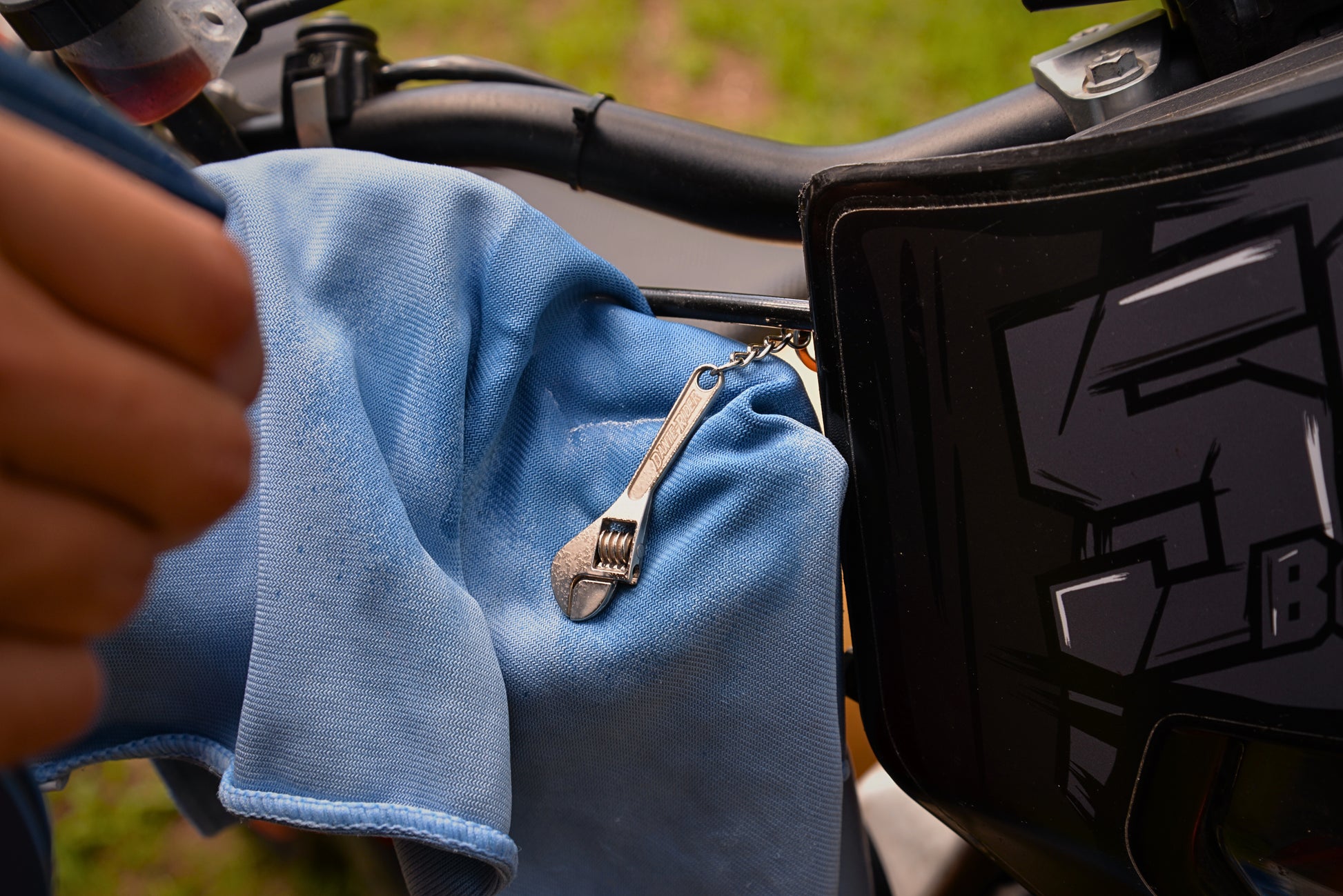A forma di chiave inglese, realizzato in metallo con incisione laser “Dante Rider”, unisce estetica meccanica.